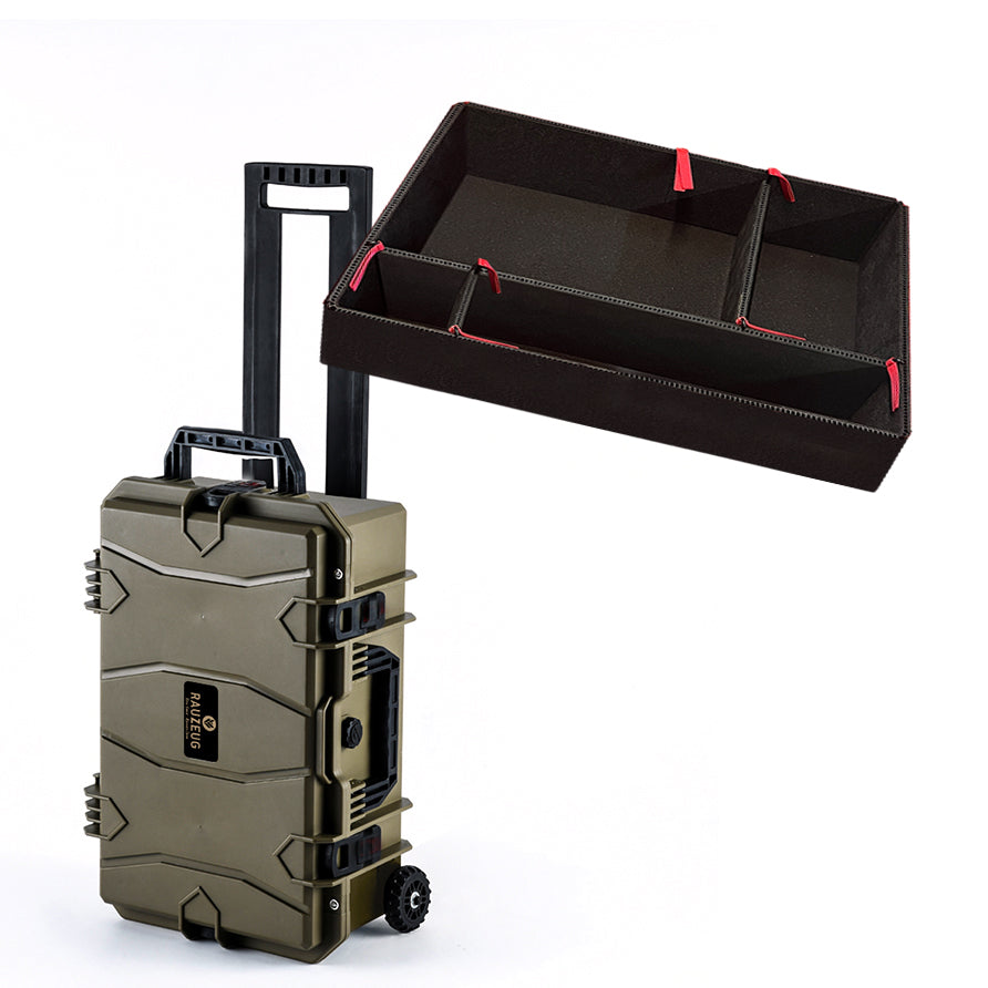 Bei dem Drohnen Set 2 kannst du mit dem RT550 als stabiler Trolley deine gesamte Drohnen-Ausrüstung bequem überall hinbringen. Das DIY Insert Set hilft bei der Einteilung und schützt die wertvolle Ausrüstung! Aus der Praxis für die Praxis zusammengestellt.
