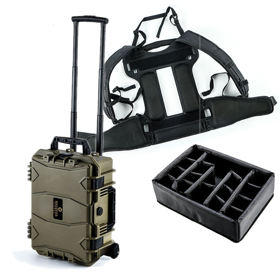 Bei dem Photo Set 2 kannst du den RT465 als Trolley oder als Rucksack benutzen und so deine schwere Ausrüstung bequem überall hinbringen.